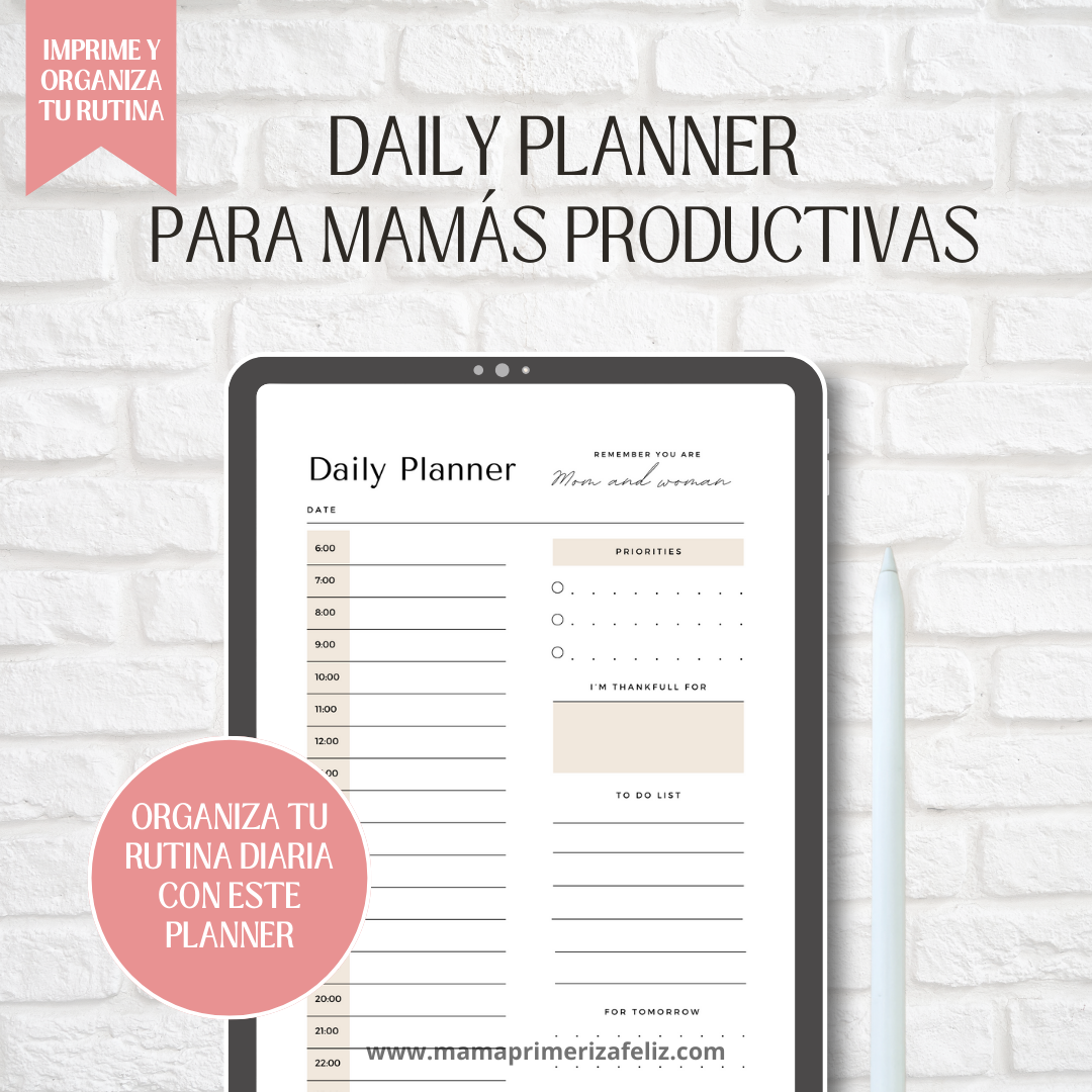 Organiza tus días y sé una mamá mas productiva con este organizador diario para mamás.